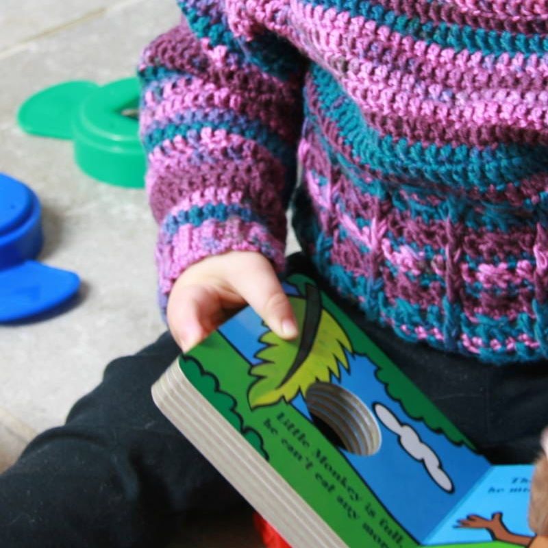 This quick-to-make, charming pullover is going to be a classic in your child’s wardrobe. Sized from 12 months to 6, you will be asked to make this again and again. Designed from the top down, the sweater is seamless. Simple post stitches give the bottom of the sweater interest and the sleeves taper to the wrist then both end with a simple but