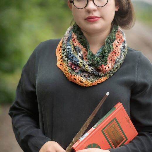 Bewitched is a simple cowl done with a three-round repeat of chevrons. What will capture your attention is the changing colors after each repeat. Designed for a special kit of 12 minis, you can choose to place your colors in any order you wish or create your blend of colors to make this charming cowl unique.