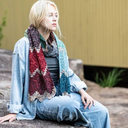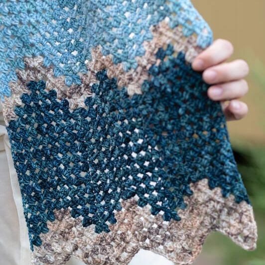 The pattern features a basic Granny Ripple stitch, reminiscent of arrows on a treasure map. It is easy to memorize and allows each mini-skein color to shine. Unlike the Goonies’ challenges, this shawl is easy to create and a joy to wear.